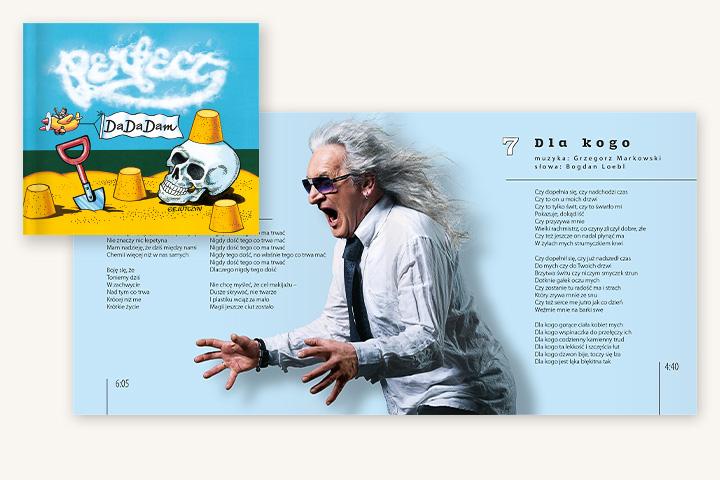 Création du digipak, booklet et étiquettes de CD de l'album DaDaDam du groupe Perfect. Illustrations : Edward Lutczyn. Client : Polskie Radio (Radio Polonasie), 2014.