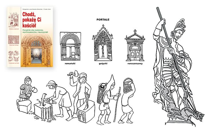 Ilustracje i projekty okładek dwóch książek dla dzieci i młodzieży Chodź, pokażę Ci klasztor oraz Chodź, pokażę Ci kościół, Instytut Wydawniczy Pax, 2003–2004. Rysunki: Beata Kulesza-Damaziak.