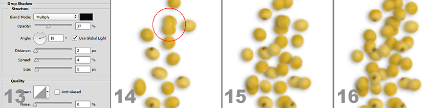 13. W zakładce Drop Shadow ustawiamy dowolny, jaki nam pasuje do naszego tła, cień.