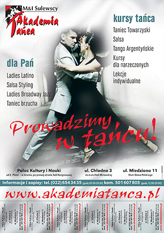 With the Akademia Tańca M&I Sulewscy (M&I Sulewscy Dance Academy) we continuously cooperate since 1997, preparing, among others, posters, leaflets, brochures, etc.