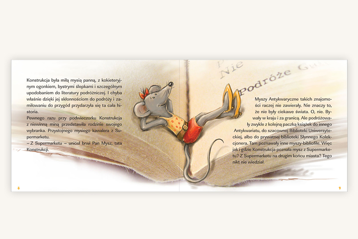 Les illustrations qui n'ont jamais vu le jour. Elles ont été dessinées en 2008 pour un concours d'illustration d'une maison d'édition polonaise : Wydawnictwo Bis. Une fois réjetée, la souris se reposante sur un livre est devenue un élément important de l’identité visuelle de Studio Karandasz. Dessins : Beata Kulesza-Damaziak.