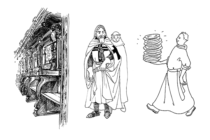 Ilustracje i projekty okładek dwóch książek dla dzieci i młodzieży Chodź, pokażę Ci klasztor oraz Chodź, pokażę Ci kościół, Instytut Wydawniczy Pax, 2003–2004. Rysunki: Beata Kulesza-Damaziak.