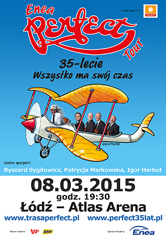 - projekt linii graficznej trasy koncertowej zespołu Perfect, ilustracja: Edward Lutczyn, klient: Wagart, 2015.