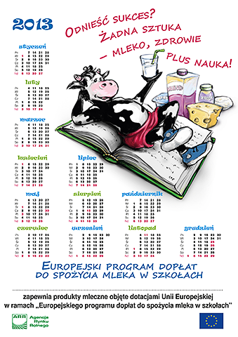 - projekt graficzny oraz copywriting plakatu-kalendarza „Szklanka mleka” (Europejskiego programu dopłat do spożycia mleka w szkołach) dla Agencji Rynku Rolnego, 2014;