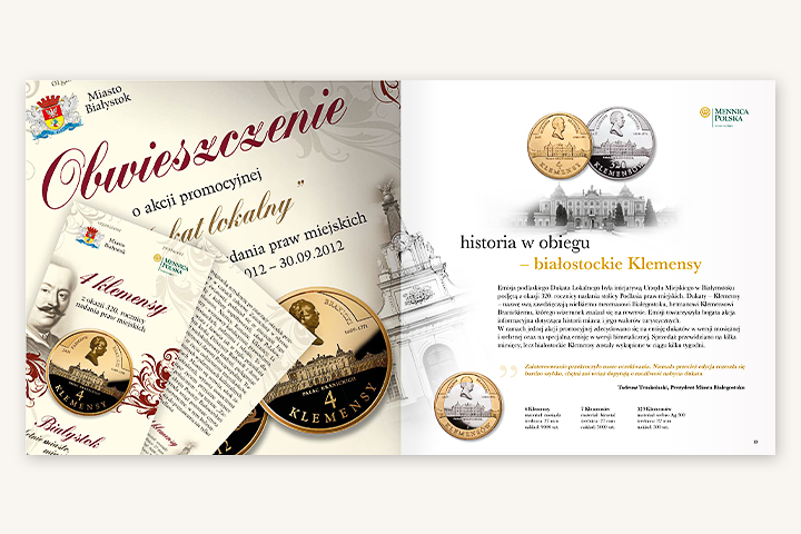 Opracowanie koncepcji graficznej i copywriting całego katalogu „Dukat Lokalny” dla Mennicy Polskiej, 2012.