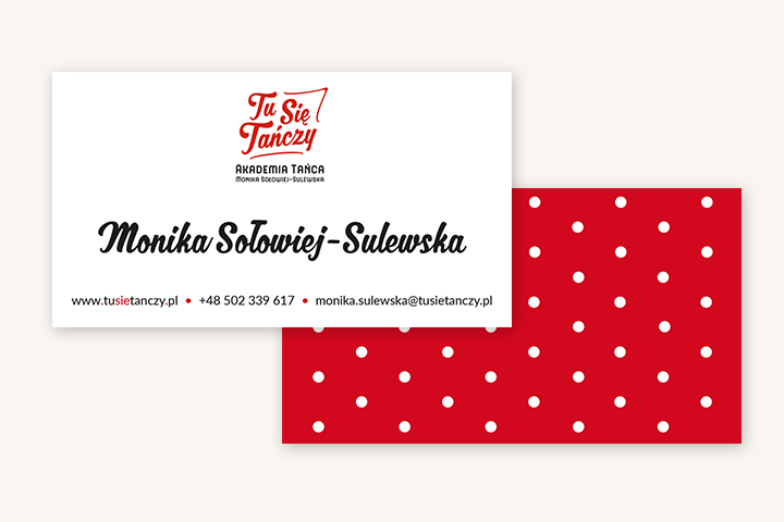 Projekt logo oraz wiytówek Tu Się Tańczy Akademia Tańca Monika Sołowiej-Sulewska, 2016.